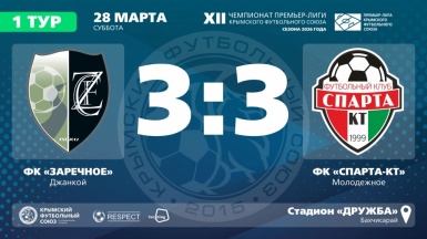 ФК "Заречное" (Джанкой) – ФК "Спарта-КТ" (Молодежное) – 3:3. Протокольные данные