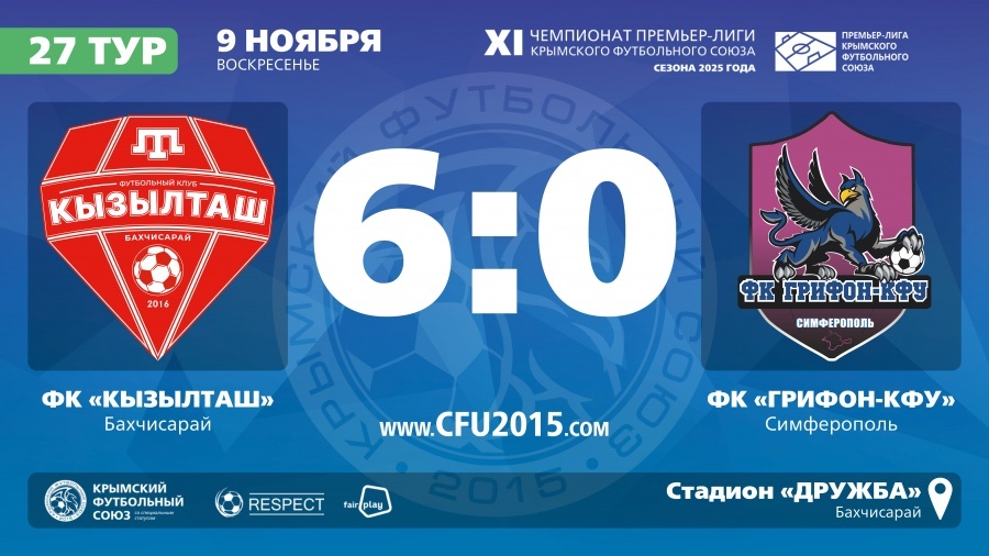 ФК "Кызылташ" (Бахчисарай) – ФК "Грифон-КФУ" (Симферополь) – 6:0