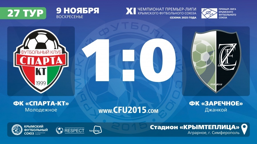 ФК "Спарта-КТ" (Молодежное) – ФК "Заречное" (Джанкой) – 1:0. Протокольные данные